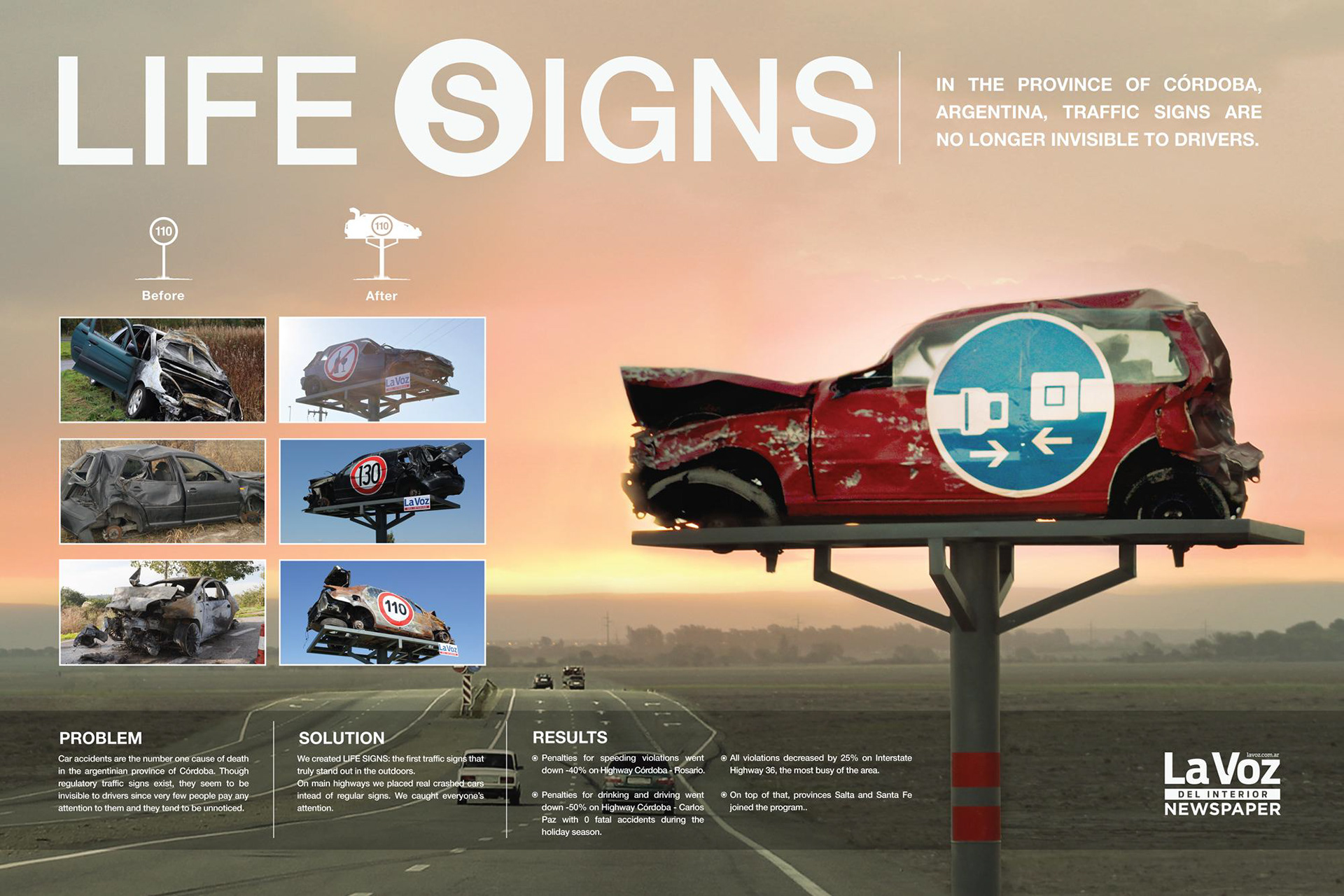 Car accidents are the number one cause of death in the entire Argentine province of Córdoba. Traffic signs are there, but people don’t seem to notice them. ‘La Voz del Interior’ is Córdoba's most popular newspaper and its aim was to help develop the public’s understanding of this issue. Our solution was simple: we created traffic signs that would be impossible to ignore.